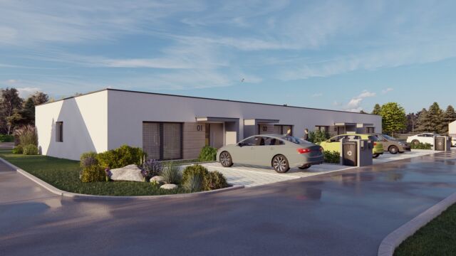 V každém domě bude instalováno tepelné čerpadlo pro ohřev vody a podlahové vytápění, rekuperace a venkovní bezpečnostní žaluzie Z.