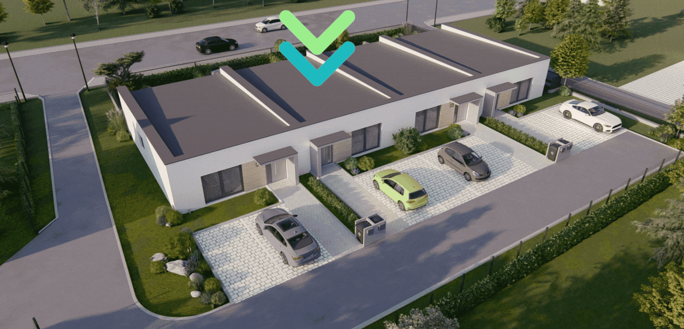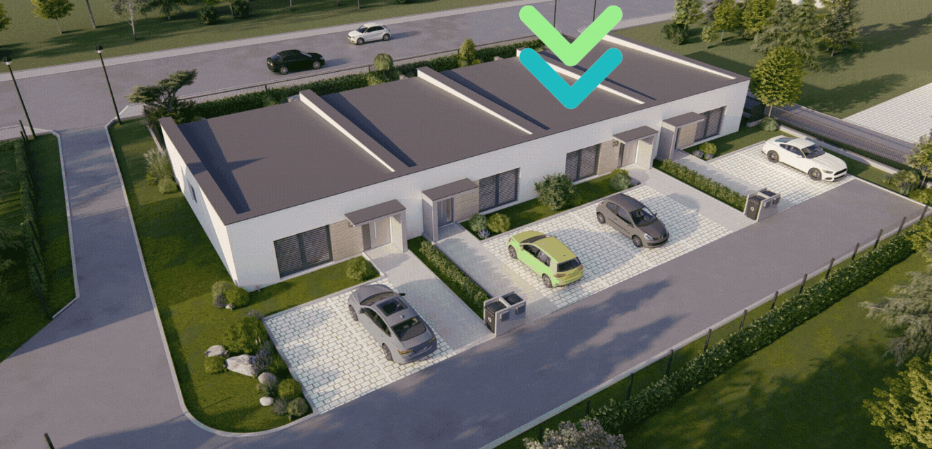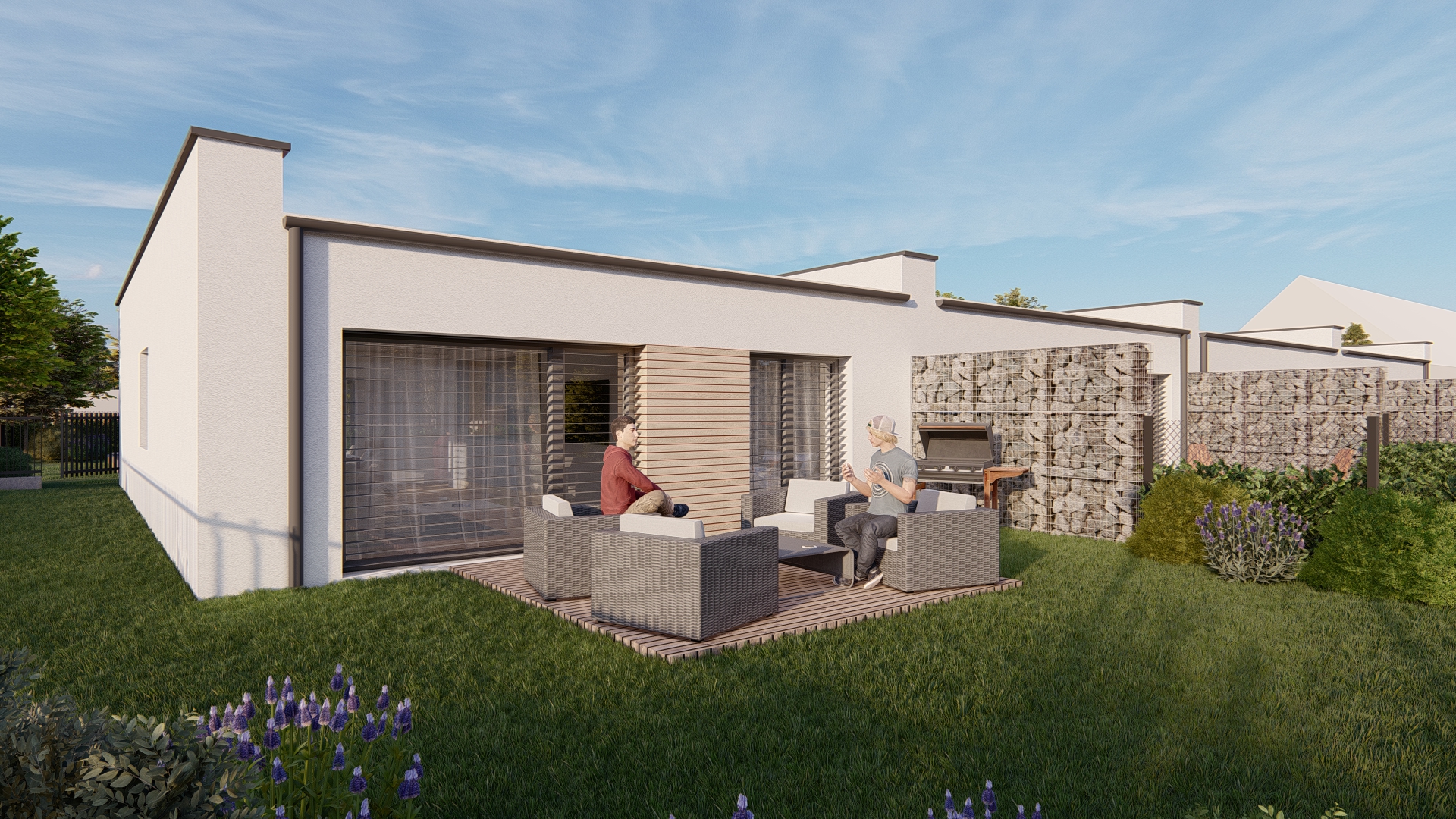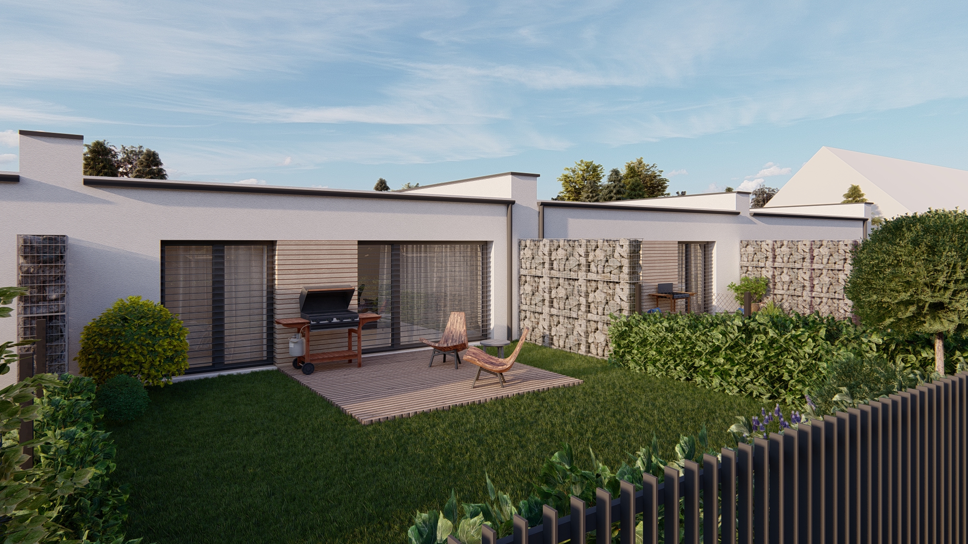 V každém domě bude instalováno tepelné čerpadlo pro ohřev vody a podlahové vytápění, rekuperace a venkovní bezpečnostní žaluzie Z.